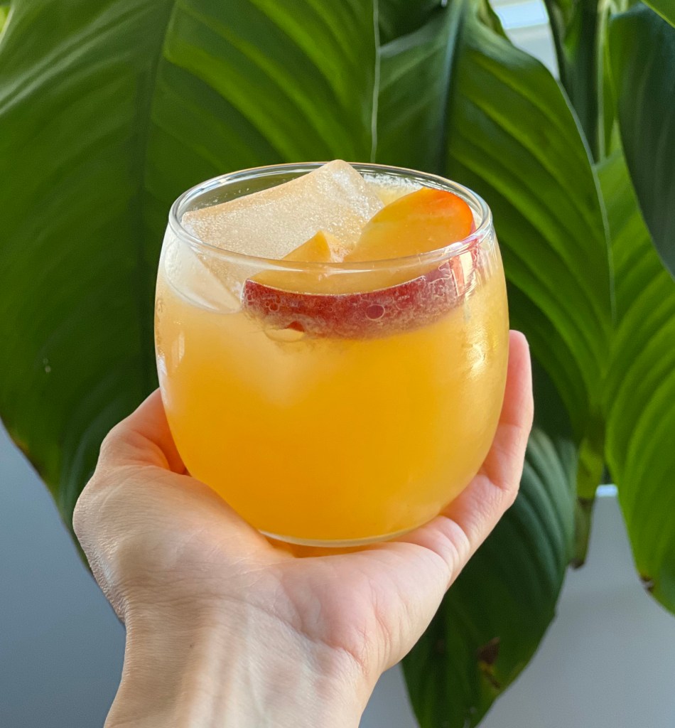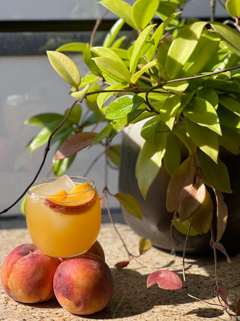 It’s smooth and light and nicely balanced. It’s also great to batch; you can easily make a pitcher full of peachy joy. I actually used canned peaches because they have a predictable level of sweetness and the syrup helps to add that peachy flavor (garnish with a fresh peach slice though since a canned peach on the glass rim would look like a slimy orange slug).