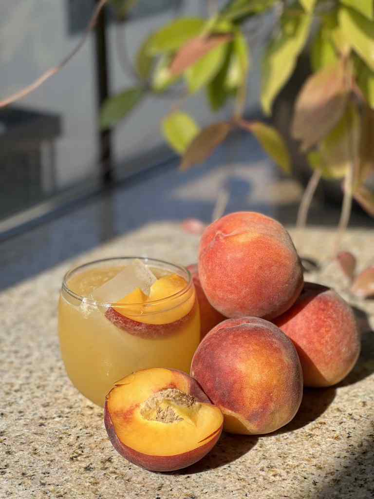 - .5 ounce simple syrup (you can use 1 ounce of simple if you’re not using canned peaches)