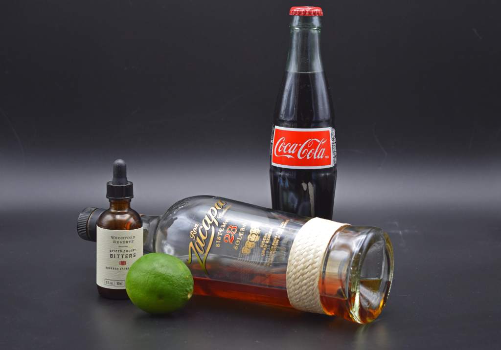 It calls for rum, coca-cola simple syrup, spiced cherry bitters, and a touch of lime. There’s a tangier taste to it than the classic rum & coke due to the reduced cola and splash of lime. The spiced cherry bitters add a hint of tart spice.